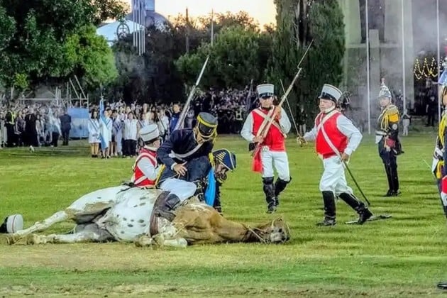 Sergio Pasquini personificó al Libertador en una recreación histórica inédita ante el Presidente y el Gobernador. Los secretos detrás del entrenamiento de "Gaucho", el caballo que simuló la caída del prócer, y la emoción de un abrazo colectivo que conmovió a todos.