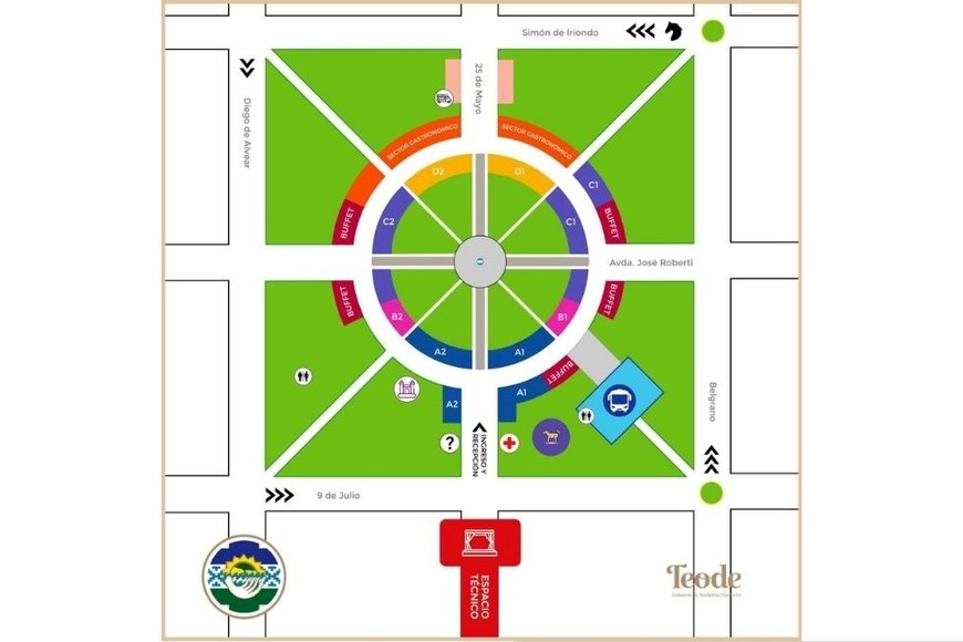 Croquis de la distribución de puestos para la feria. Foto: Gobierno de Teodelina.