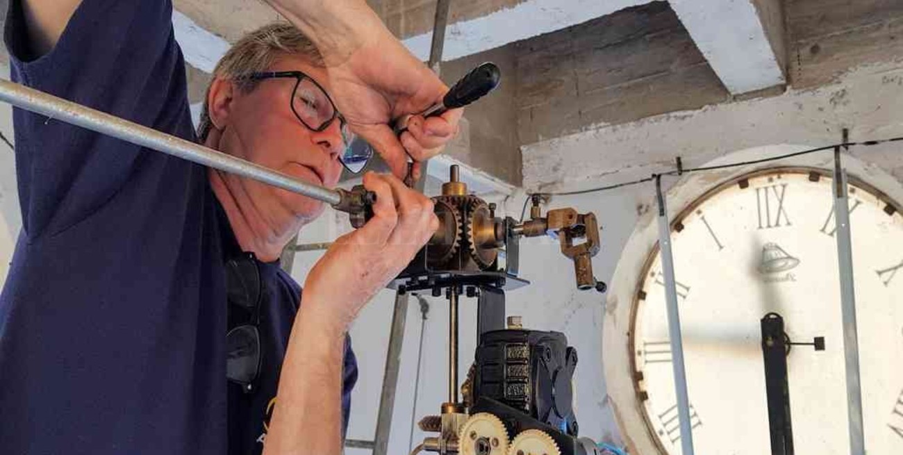 Los cinco aficionados, además, propusieron realizar un recambio de los cuadrantes de acrílico por otros de vidrio – tienen una dimensión de 1,15 metros de diámetro – para refaccionar las esferas. Sin embargo, desde la Parroquia desistieron y prefirieron mantener el estado actual por razones de costos. “Lo que hicimos fue ajustar todos los engranajes de cada uno de ellos y hacerle una limpieza profunda”, destacaron. Desde la iglesia modificaron la iluminación de la torre y, ayudado por la limpieza de los materiales, hoy el reloj luce con mayor luminosidad.