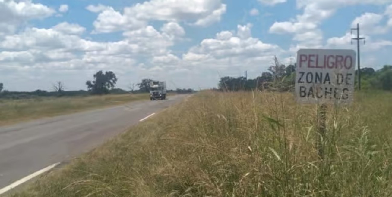 Más adelante, llega uno de las aristas insólitas de esta zaga sin remedio: un cartel tapado por yuyos de casi dos metros con la leyenda “Peligro zona de baches” se erige equidistante entre dos depresiones de la ruta, que ya son viejas conocidas de los transeúntes y que obligan a circular por la mano contraria para evitar roturas y accidentes.