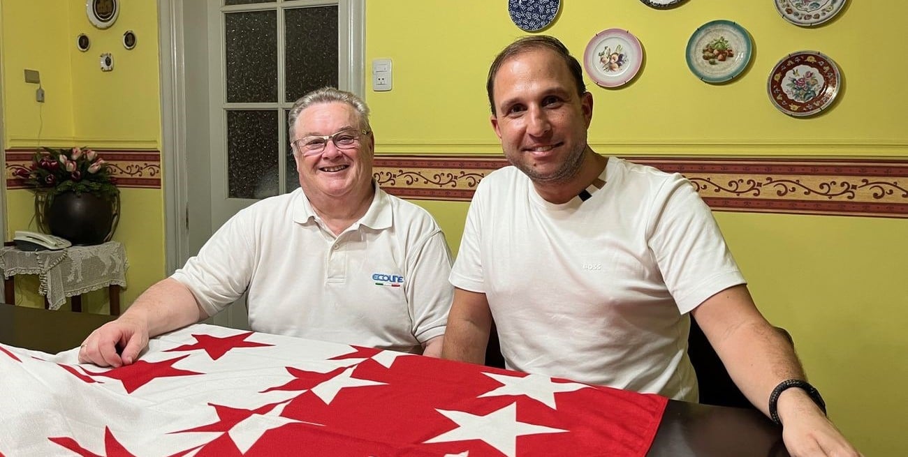 Alan Daniele Zimmermann, junto al reconocido historiador local José Luis Eggel, durante la entrevista con El Litoral.