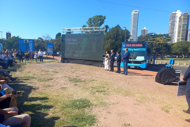 Con cinco colectivos de la línea 153 estacionados y la presencia de Diego Giuliano, titular del Ministerio de Transporte nacional, se presentó este lunes la implementación de la tarjeta SUBE a metros del río Paraná, en la zona del Monumento Nacional a la Bandera.