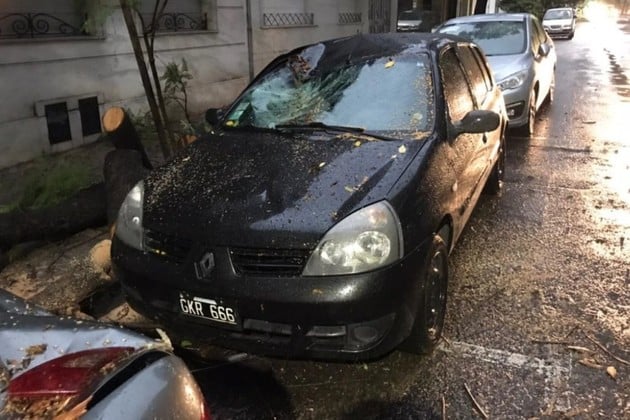 Los casos más delicados se dieron en Hernández y Marull, en la zona norte, y en el área central en Balcarce 1015 y en Moreno y Catamarca, donde un árbol de gran porte aplastó tos a dos automóviles causandoles serios daños a la carrocería. El más afectado fue un Renaul Clío negro, que sufrió destrozos en el parabrisas y el techo.