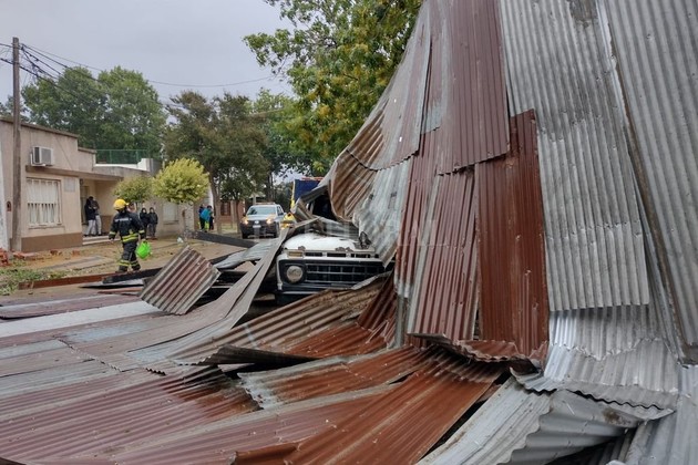 Según indican desde Bomberos Voluntarios, de acuerdo a los diferentes llamados, cayeron 16 árboles enteros hasta el momento y diversas voladuras de techos y otras estructuras.
