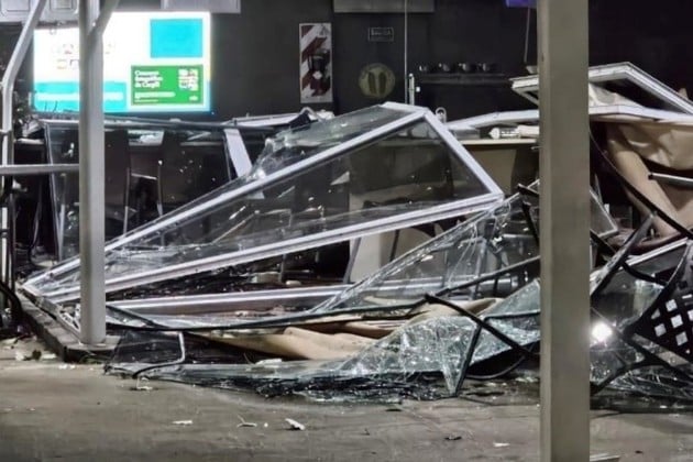 Entre las imágenes difundidas tras el temporal se observaron importantes destrozos en el comedor de la empresa Cargill, uno de los puntos más afectados por la fuerza del viento.