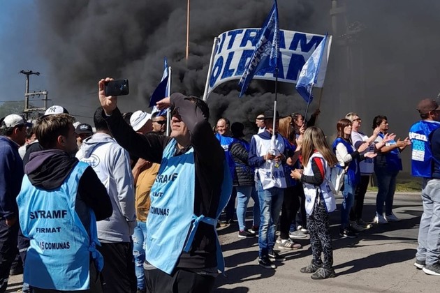 El corte de los trabajadores sobre la Ruta 8.