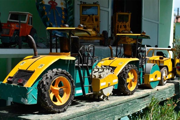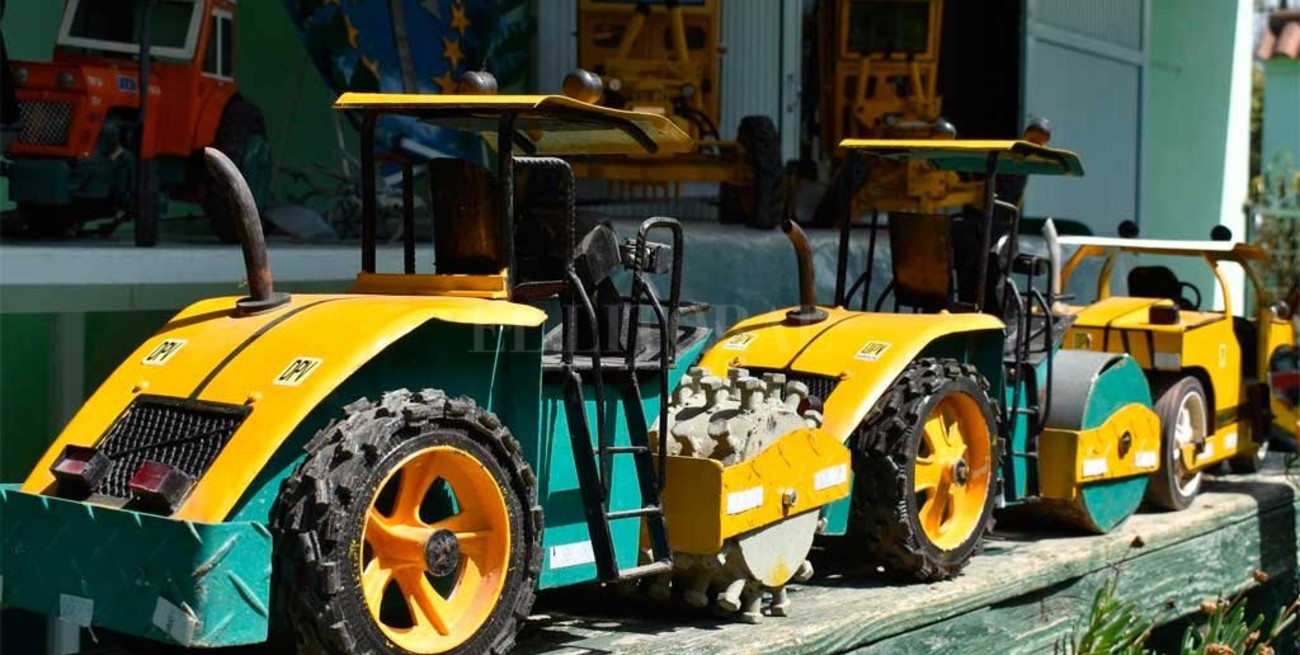 En su colección hay réplicas exactas de todo tipo: motoniveladoras, retropalas, excavadoras, tractores, articuladas, orugas, hasta cosechadoras. Y las conocidas como “pata de cabra”, “rolos” o “engomadas”. Estas últimas, quizás en 10 días de trabajo firme en el taller las tiene listas.
