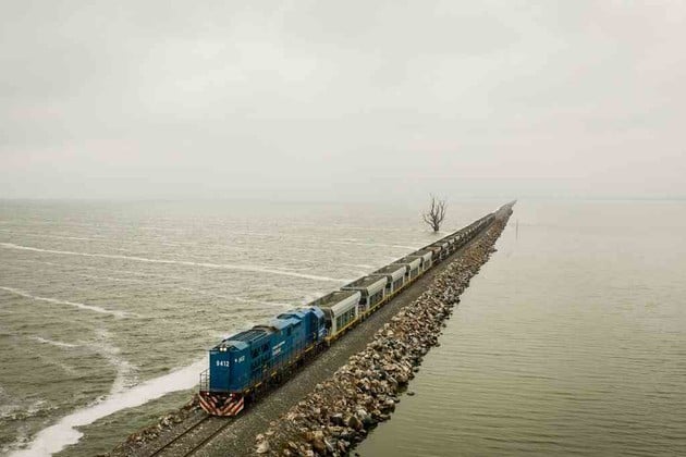 Obras de rehabilitación de las vías del tren de cargas sobre la laguna La Picasa.Foto: Gentileza