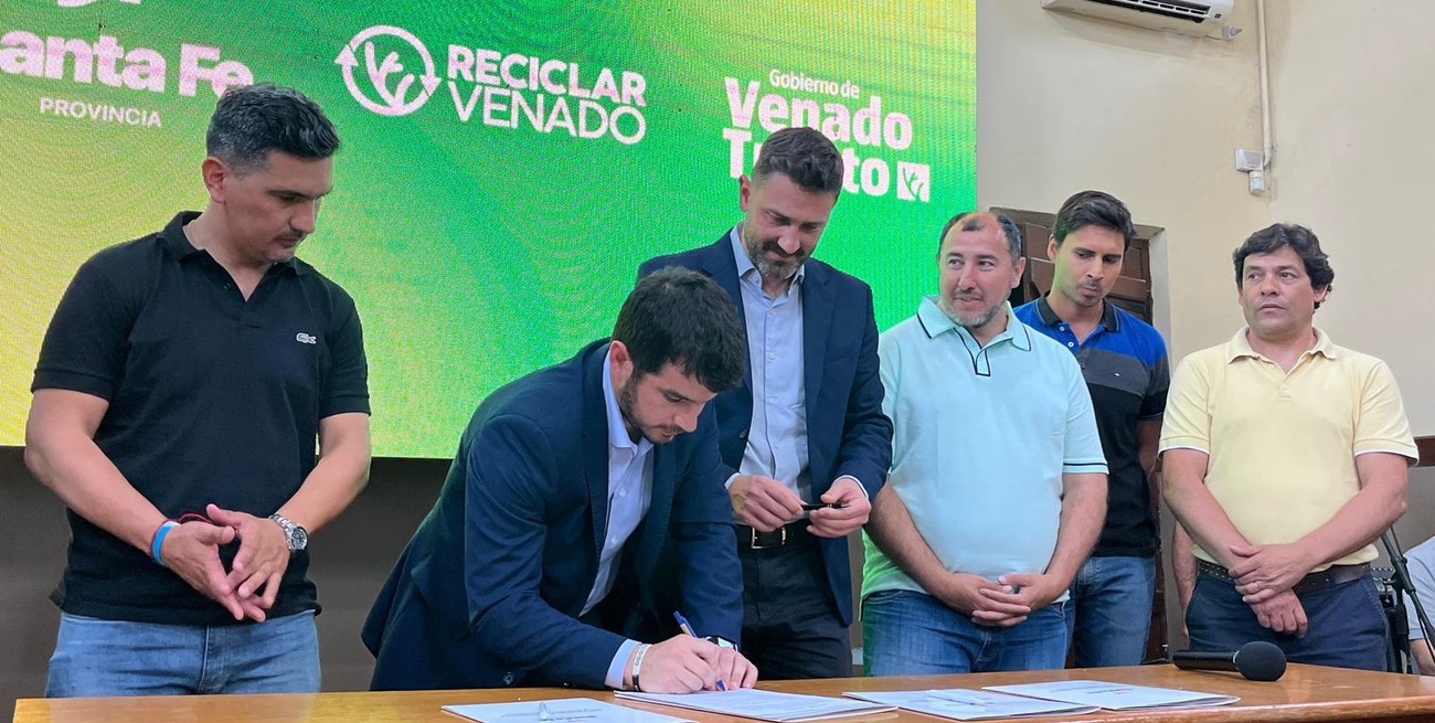 Para dar inicio al acto se procedió a la firma del convenio con la rúbrica de Enrique Estévez, ministro de Ambiente y Cambio Climático, Leonel Chiarella, intendente de Venado Tuerto y los presidentes comunales de Murphy, Ezequiel Rodríguez; de Maggiolo, Juan Fetter; de Carmen, Walter Czelada; de San Eduardo, Leandro Rinaldi; de La Chispa, Cristian Bustamante; de San Francisco, Ignacio Freytes; y de Chapuy, Jorge Marmiroli.