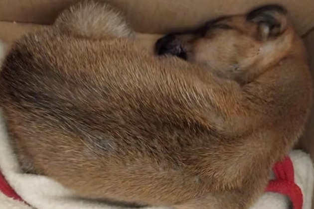 La caja en la que estaba la cachorra cuando fue encontrada por los trabajadores municipales.