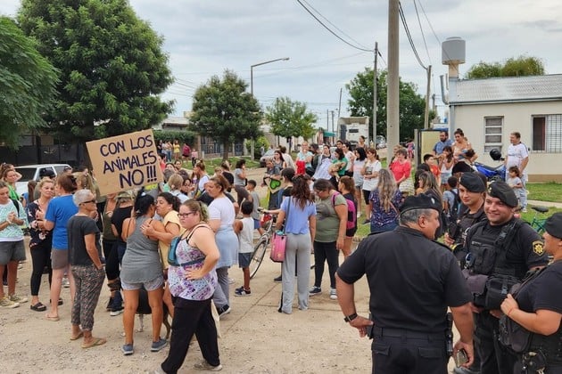En ese momento la médica veterinaria Inés Carusillo se hizo presente en el domicilio, que luego fue centro de la manifestación, ubicado en Gobernador Molina al 300 de donde rescató al animal y llamó a la Policía quedando la mujer demorada acusada de Maltrato Animal (Ley Sarmiento).