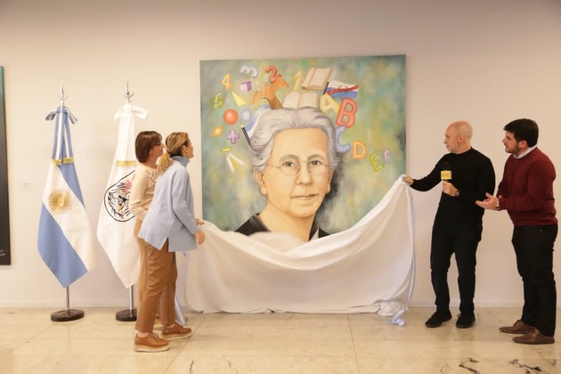 La artista plástica venadense había ganado en marzo último el concurso nacional organizado por el Ministerio de Educación porteño en homenaje a la “gran maestra de la Patria”. Este miércoles, Laura Lorenzini, muy emocionada, asistió a la ceremonia de presentación del “mural” en la Jefatura de Gobierno de la Ciudad de Buenos Aires.