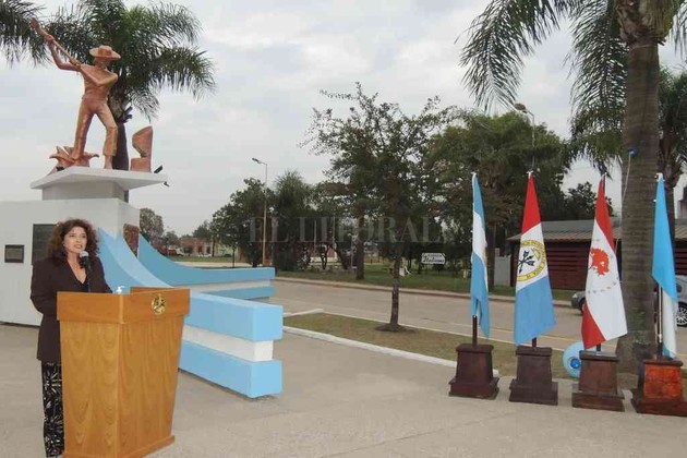El izamiento de la Bandera estuvo a cargo de la intendente Paula Mitre, del presidente del CM César Lugo y el arquitecto Rubén Lapissonde como integrante del DEM y diseñador del monumento.