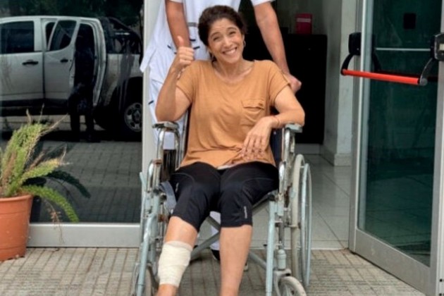 Debido a las heridas recibidas, debió ser trasladada y atendida en el Hospital Regional Vera, de donde salió en silla de ruedas, con una sonrisa y la pantorrilla derecha vendada.