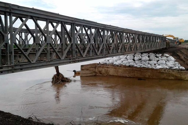 Este martes finalizó la colocación del puente “Mabey” sobre la Ruta Provincial 1, zona fuertemente afectada por la emergencia hídrica.