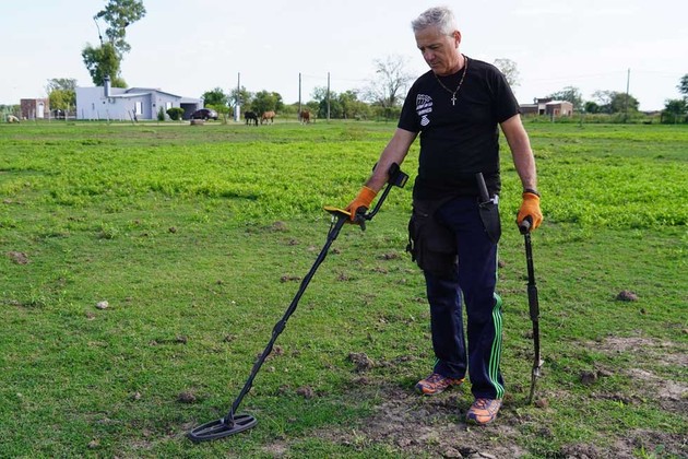 Ternavasio contó que ese primer descubrimiento fue sorpresivo. “Cuando comprás el detector lo primero que hacés es ir al patio de tu casa. Tenes que aprender a manejarlo, adaptarte a los sonidos, ir conociéndolo, a sumar experiencia como todo. Después empezamos a recorrer las afueras del pueblo y empezamos a aparecer cosas importantes: botones gauchescos, una moneda de 1827 y nos dimos cuenta con Sandra que había mucho por trabajar”.