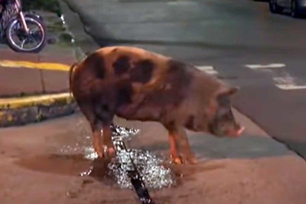 “Es algo inusual”, dijeron los vecinos a medios entrerrianos. La secuencia finalizó cuando el chancho fue rescatado por sus dueños.
