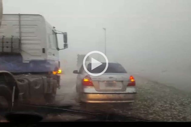 La tormenta se hizo sentir en la provincia de Santa Fe, sobre todo en el sur de la “bota”. A través del WhatsApp de El Litoral, una lectora envió imágenes de cómo fueron sorprendidos por el granizo en la autopista Santa Fe - Rosario.