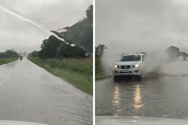 Las imágenes que circularon en redes sociales son elocuentes. Los vehículos cruzaron los sectores con agua acumulada en toda la calzada.