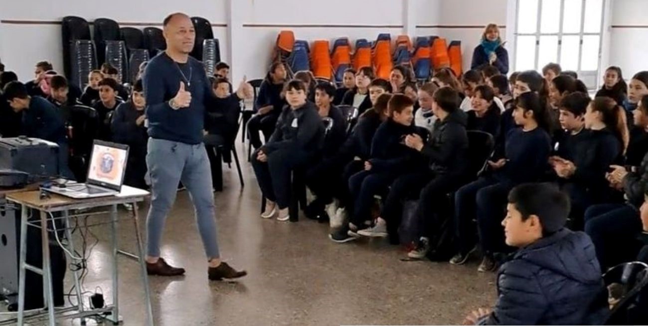 Sergio Appa en medio de una de sus charlas en la escuela "Divino Maestro" de San Gregorio.