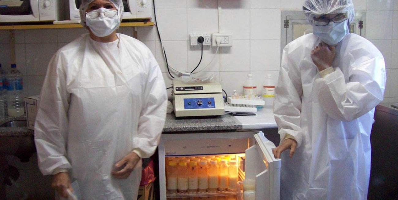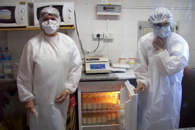 La leche materna donada es conservada en frascos de vidrio previamente esterilizados y se conserva congelada hasta su uso.