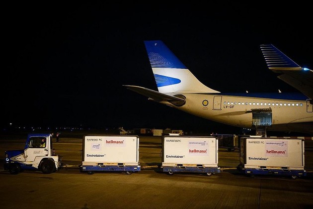 La aeronave Airbus 330-200, matrícula LV-GHQ aterrizó a las 18.15 en el aeropuerto internacional de Ezeiza, transportando 768.000 dosis de la vacuna fabricada en China, tras haber despegado desde Beijing este lunes por la tarde y hacer una escala técnica en Madrid para reabastecimiento de combustible.