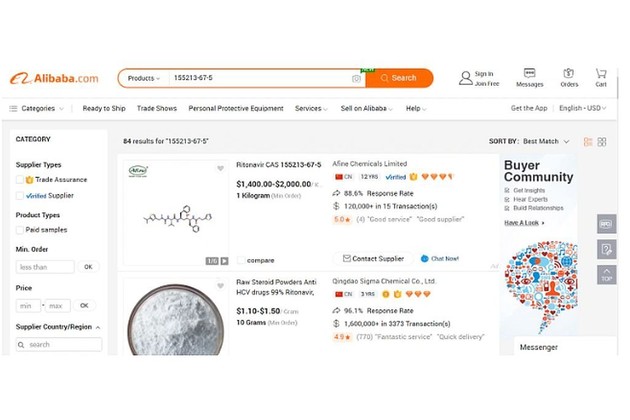 En la mayoría de las ocasiones, una simple búsqueda con el nombre del producto lleva hasta cientos de ofertas donde los usuarios pueden comprar incluso por kilos. Sin embargo, también se ha extendido el uso de códigos para localizar medicamentos. Se utilizan palabras clave específicas con el fin de evitar los mecanismos de control que establecen las propias plataformas. Por ejemplo, el código 155213-67-5 se usa como palabra clave para localizar el ritonavir y 1.809249-37-3 se corresponde con el remdesivir. También se utilizan otras palabras clave para referirse al coronavirus, como “Korona Virus”, “Wuhan Virus” o “Corona 19".