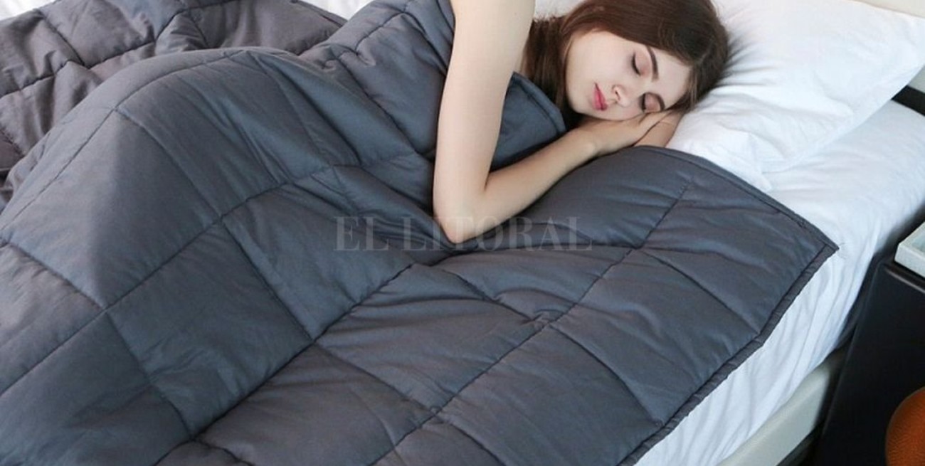 Como indica su nombre, una manta con peso es una manta rellena de cuentas de cristal, bolitas de plástico o de tejido orgánico que ejerce presión sobre el cuerpo y se usa para reducir el estrés y crear sensación de tranquilidad.