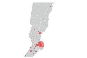 En segundo lugar aparece la capital provincial (56), luego Casilda (44) y Venado Tuerto (36).