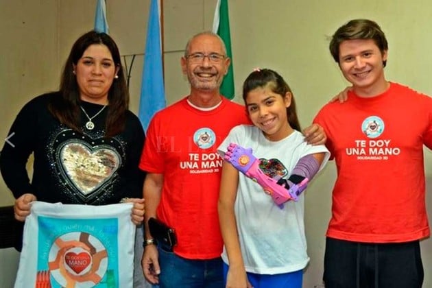 Una niña de Gálvez recibió un brazo ortopédico impreso con tecnología 3D