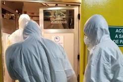 A la hora de embarcar, las autoridades instalaron una cabina sanitizante de desinfección que “cuenta con un sistema de micro aspersores automáticos, es capaz de eliminar el 99,9% de las bacterias que puedan estar contenidas en la ropa, cabello u otros objetos”.