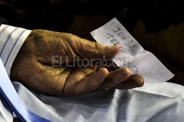 Fiel a su estilo, Miguel Etchecolatz, exjefe de investigaciones de la policía provincial, se concentró en Estela de Carlotto. Con cara de póker, le sostuvo la mirada durante unos minutos. Fue uno de los primeros en recibir la condena a perpetua, y ni se había inmutado ante los aplausos del público, que festejó el fallo. Pero ahora estaba fuera de control. Agarró un papelito y anotó un nombre. Al terminar la lectura, quiso entregárselo al Tribunal. No lo dejaron. Algunos pensaron que había escrito algo en contra del proceso que lo condenó. Sin embargo, cuando hicieron foco sobre sus manos, los fotógrafos de Infojus Noticias descubrieron un detalle macabro. Decía, de su puño y letra, “Jorge Julio López”.