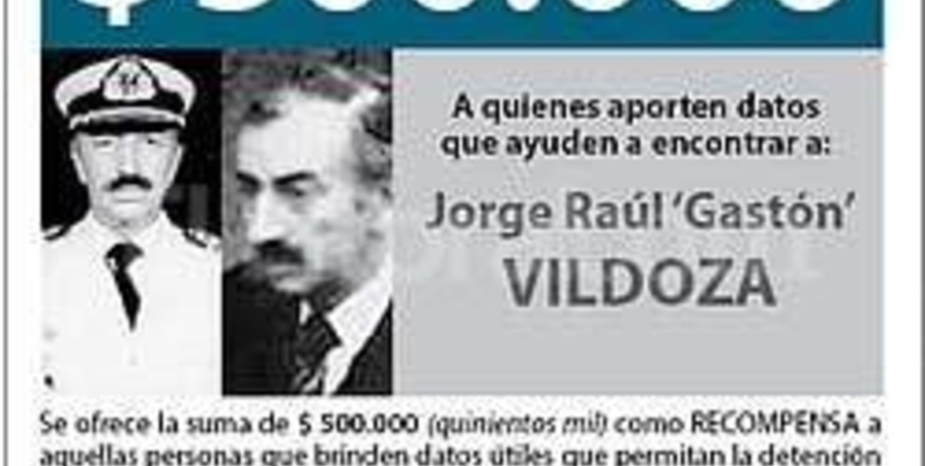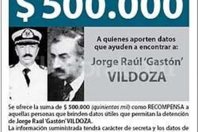 Asimismo se ofrece idéntica suma para ubicar a Ricardo Joaquín Molina y a Juan Carlos Vázquez Sarmiento por sustracción de menores, y a Juan Carlos Linarez por la causa "ESMA". Uno de los más buscados y por quien se ofrece 500.000 pesos, es el ex marino Jorge Raúl Vildoza, alias Gastón, quien actuó en la ESMA.