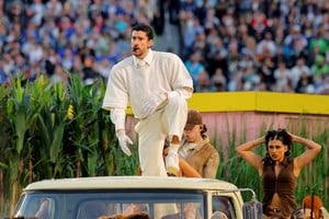 El show, bautizado por usuarios en redes sociales como “Benitobowl”, estuvo lleno de referencias culturales puertorriqueñas: campos de caña de azúcar, mesas de dominó, instrumentos tradicionales y escenas cotidianas de la vida en la isla.