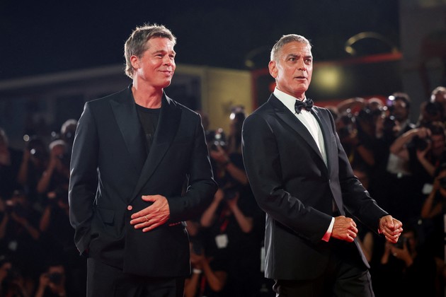 Finalmente, ambos saludaron a los cámaras y reporteros, sentándose con ellos, y después posaron en la foto de familia de la película que han estrenado fuera de concurso en la Mostra, la comedia de acción 'Wolfs', junto a sus compañeros de reparto Amy Ryan y Austin Abrams, que habían quedado más rezagados.