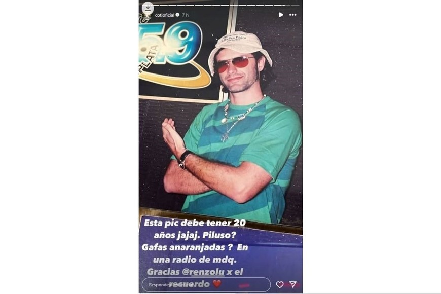 “Esta pic debe tener 20 años. ¿Piluso? ¿Gafas anaranjadas? En una radio de MDQ”, escribió el cantante, junto a la foto vintage que no pasa para nada desapercibida en este contexto. Más allá de lo que mostraron en sus perfiles, ninguno de los dos habló sobre la supuesta separación.
