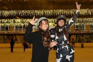 En algunas postales, Rufina la acompaña tomada de la mano, en una escena que combina cuidado, diversión y aprendizaje compartido. El clima festivo del lugar, decorado con luces cálidas y motivos invernales, aportó un marco ideal para la experiencia.