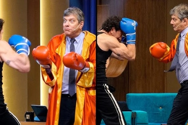 La noche todavía tenía más sorpresas. Vázquez, en sintonía con el personaje que interpreta en el teatro, improvisó una escena de boxeo con Pergolini, a quien lo vistió como si fuera un luchador. El intento de enseñar algunos movimientos terminó siendo más cómico que didáctico y volvió a desatar carcajadas en el estudio.
