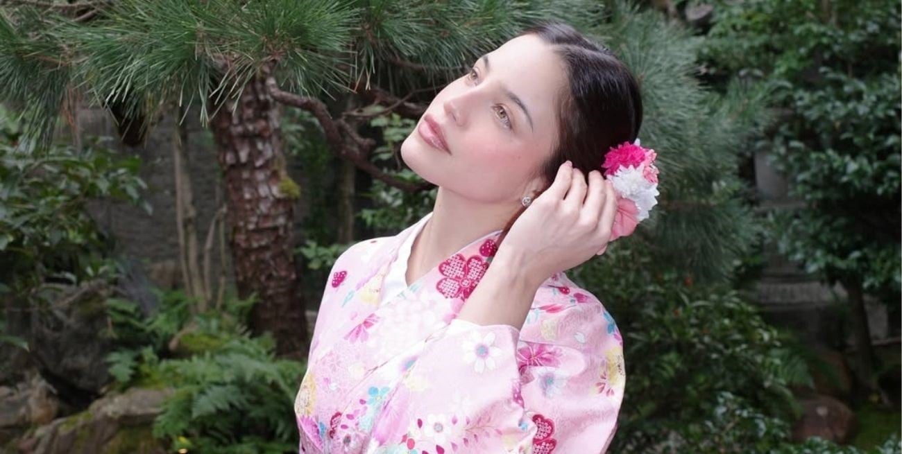Junto a Duki, la artista visitó templos, jardines y casas de té, y se animó a lucir un kimono de seda rosa, decorado con flores en tonos fucsia, blanco y amarillo. El look se completó con un obi beige y un arreglo floral en el cabello, logrando una imagen de delicadeza y respeto absoluto por la tradición local. Las fotos capturaron a la artista sentada en un salón de tatami, rodeada de vajilla, dulces típicos y luz natural, lista para participar de la ceremonia del té, uno de los rituales más emblemáticos de la cultura japonesa.