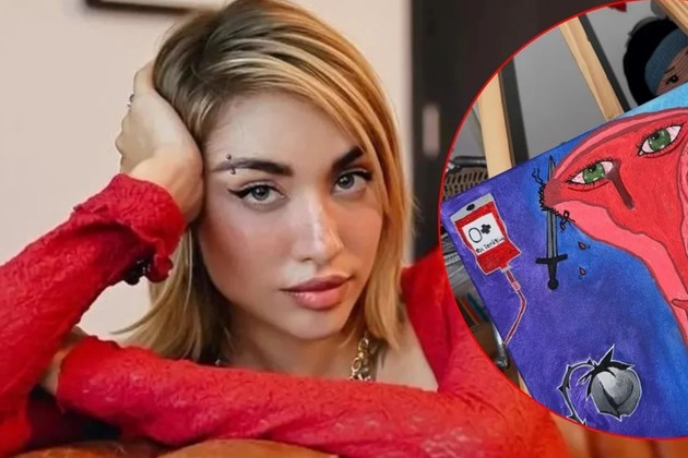 A través de su cuenta secundaria de Instagram, la cantante publicó una imagen de un cuadro que comenzó a pintar hace aproximadamente 25 días. La obra representa un útero con ojos tristes, una rosa negra marchita, una bolsa de sangre etiquetada con el tipo 0+, pastillas, una jeringa y una mariposa posada sobre una trompa de Falopio.