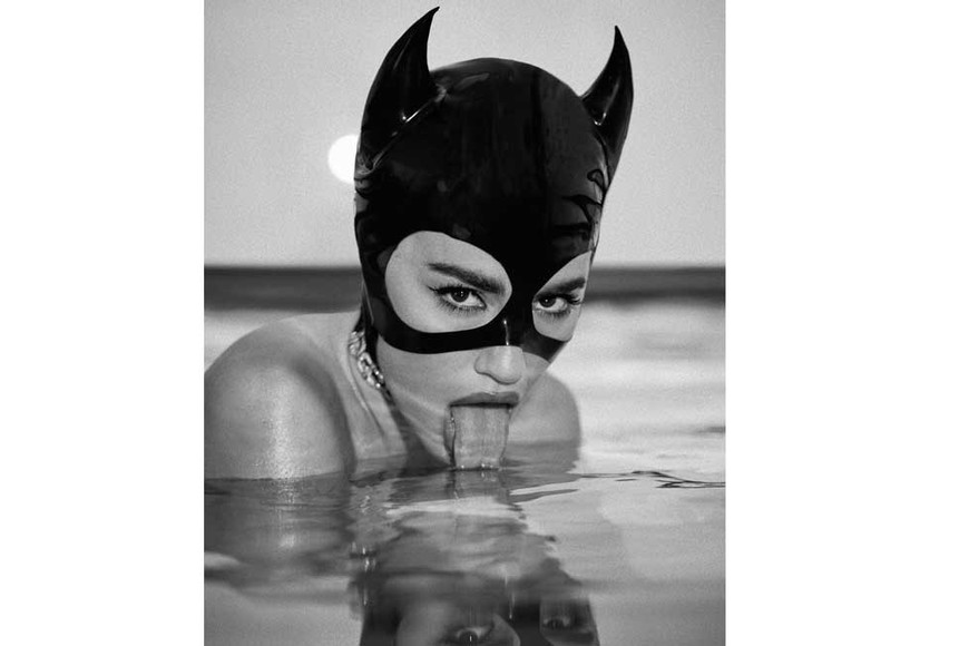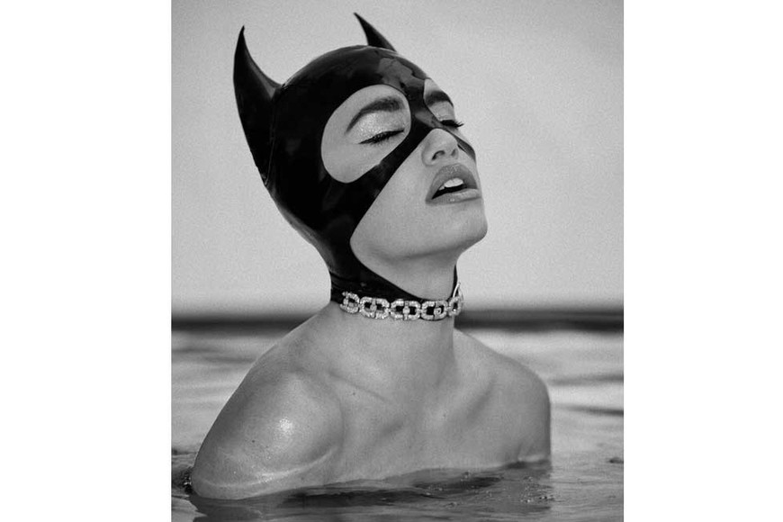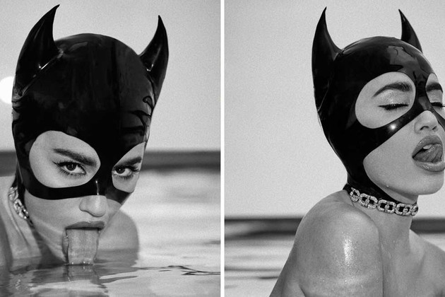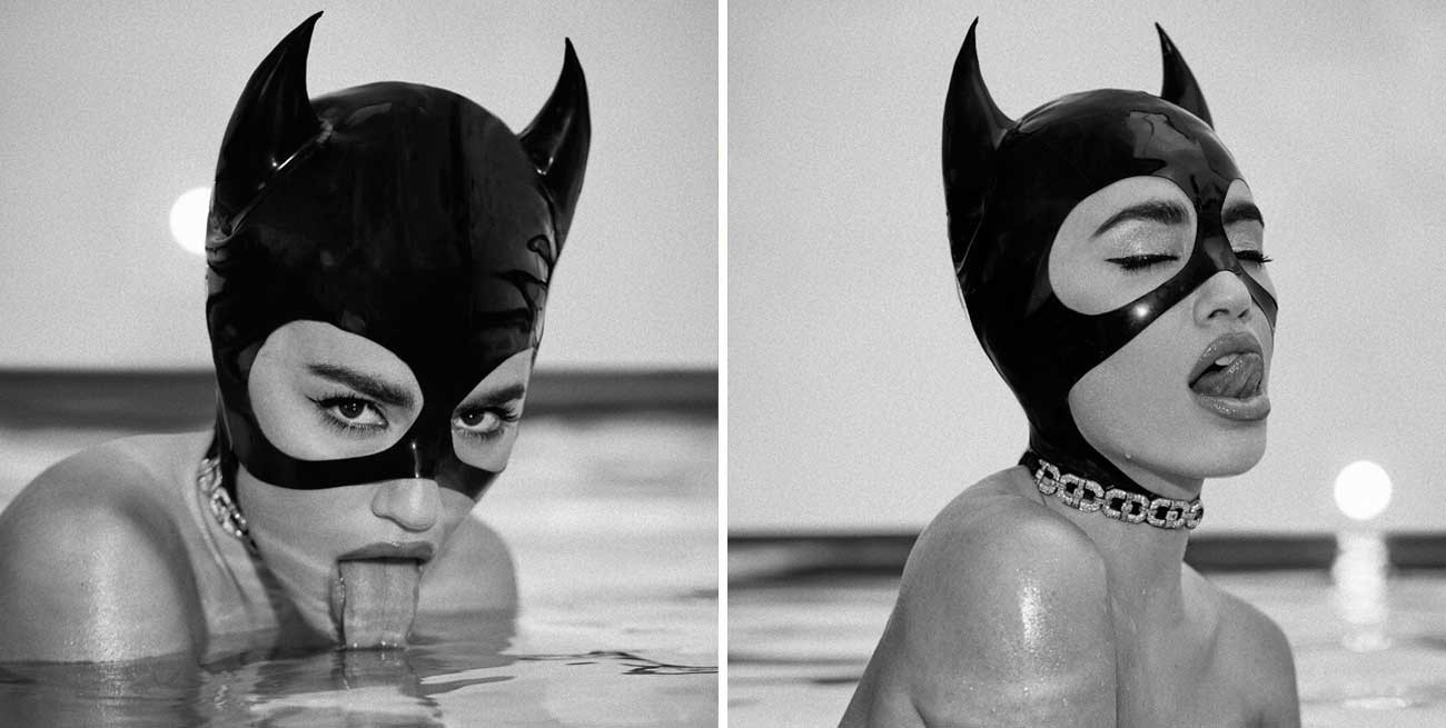 En las imágenes se la puede ver a la cantante en el agua con una máscara de Gatúbela, personaje del comic de Batman.