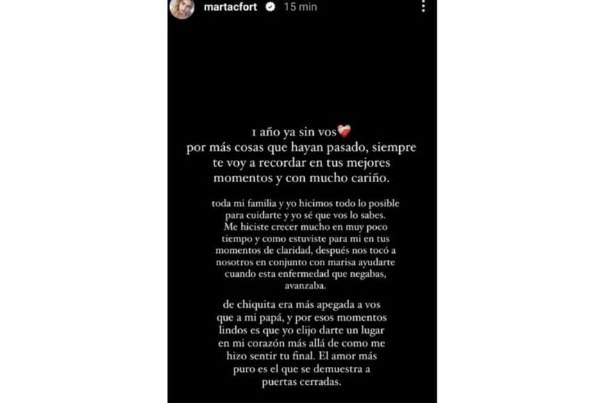 Pese a esto, Martita Fort publicó un conmovedor mensaje, donde habla sobre su vínculo con Gustavo Martínez y no se olvida que fue una persona importante en su vida.