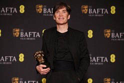 Los aplausos y vítores se intensificaron cuando se levantó, permaneciendo de pie y apoyado en el atril durante su intervención nombrando las cinco películas candidatas y revelando que Oppenheimer era la vencedora, sumando así su séptimo BAFTA de la noche.
