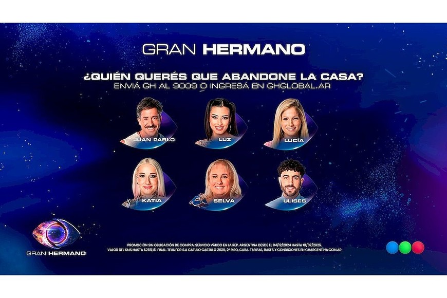 Los nominados son seis: Juan Pablo, Luz, Lucía, Katia, Selva y Ulises. Cabe recordar que Tato no podrá ni subir ni bajar a ningún compañero, ya que al ser pocos este tipo de jugadas no se realizará más en “Gran Hermano 2025”.
