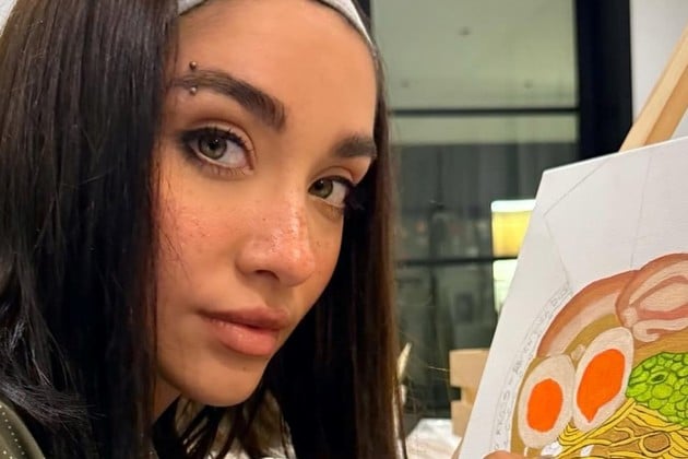 “Estos días he estado pintando muchísimo para procesar y canalizar varios pensamientos. Hoy hice este cuadrito inspirado en ‘Ramen para dos’, una canción más que especial de la mano de Paulo Londra y XROSS”, escribió.