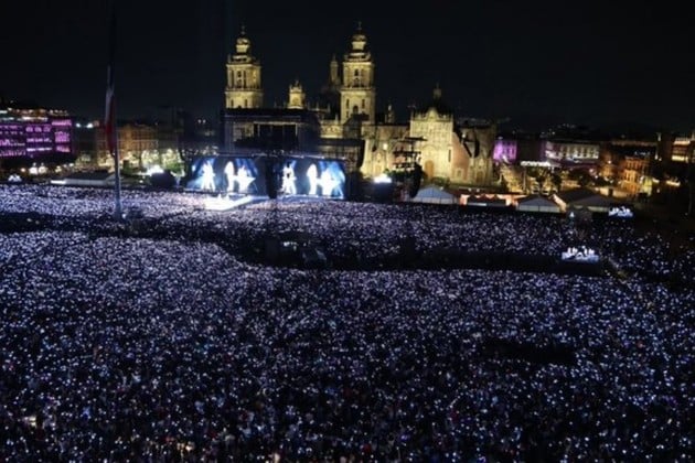 Shakira ofreció el recital gratuito, donde fue ovacionada por una delirante multitud ante la cual apareció al final agitando una gran bandera mexicana, después de ofrecer 13 fechas en México en el marco de su gira "Las mujeres ya no lloran", entre ellas el Estadio GNP, con un aforo de 65.000 personas, registrando en todos los escenarios un lleno total.