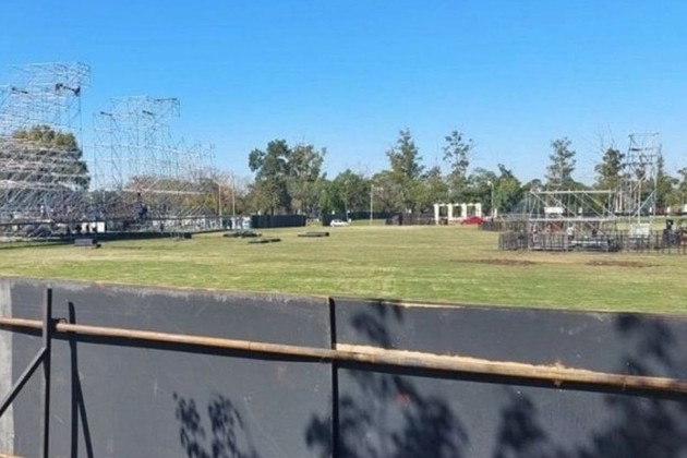 Con varios camiones lograron armar estructuras y ya está montada la mayor parte del escenario, que tendrá una longitud aproximada de 80 metros y cuenta con alrededor de 20 metros de altura.