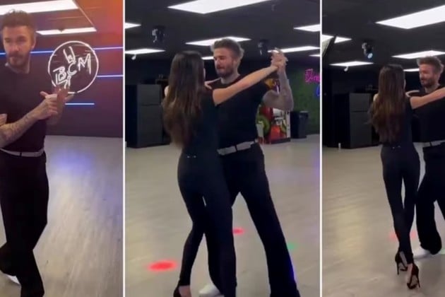 En las imágenes se puede ver a la ex integrante de las Spice Girls (una banda musical de pop británica famosa en los 90 compuesta por cinco mujeres) grabando la secuencia en la cual la pareja se encamina rumbo al salón para tomar una clase de salsa. Vestidos con ropa negra, David y Victoria se movieron con fluidez con la coordinación de un profesor.
