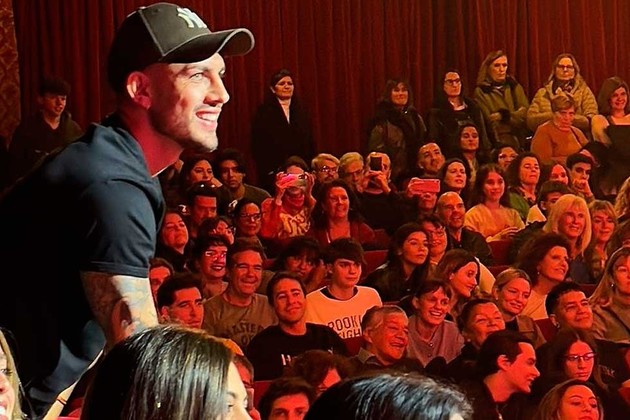 Al ritmo de la popular canción “Muchaachos”, el actor Nico Vázquez invitó a Paredes a subirse al escenario y agradecerle haber asistido nuevamente a su obra: “No puedo creer que vino dos veces. Primero viniste después de ser campeón del mundo y ahora bicampeón. Te gustó mucho en serio, amigo”.