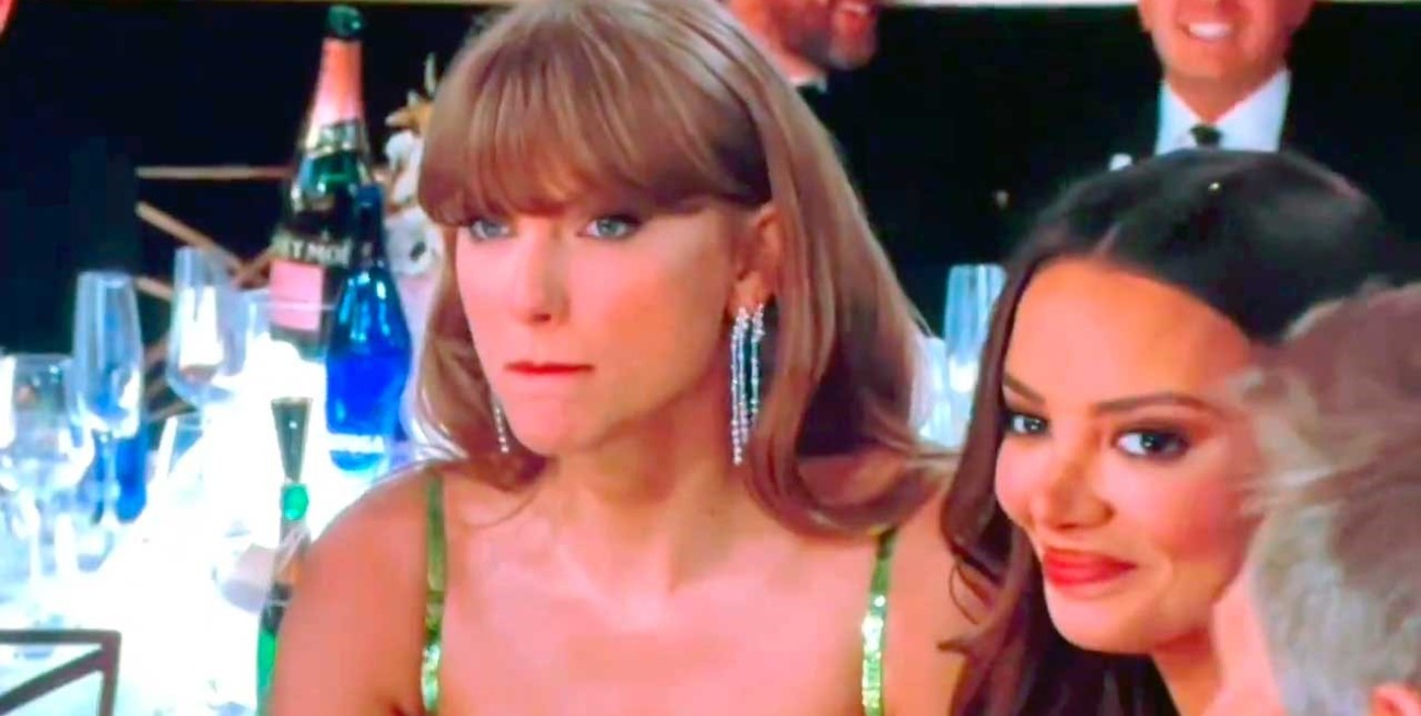 Taylor Swift se robó todas las miradas en los premios Globos de Oro al reaccionar ante la broma que le hizo el anfitrión de la gala, Jo Koy.